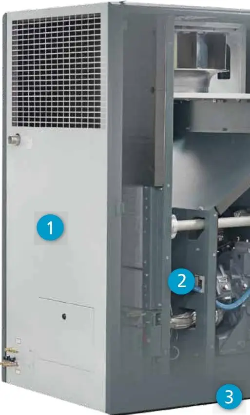 Køleren er placeret lodret, hvilket i høj grad reducerer støjen fra ventilator, motor og rotor.