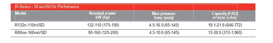 Vores næste generation af R-seriens kompressor inkluderer en helt ny, avanceret luftende, hvilket gør den til dit bedste valg for ydeevne. Den nye luftende forbedrer effektiviteten gennem adskillige fremskridt, inklusive en optimeret rotorprofil for at hjælpe med at minimere driftsomkostningerne.
