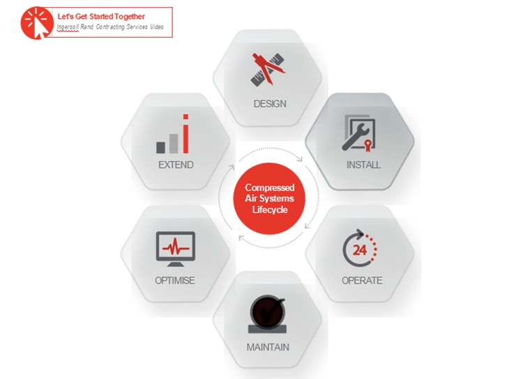 Din virksomhed vil drage fordel af Ingersoll Rands partnerskab gennem vores omfattende erfaring og globale ekspertise for at sikre pålidelighed, lavere vedligeholdelsesomkostninger, nem service og systemoptimering.